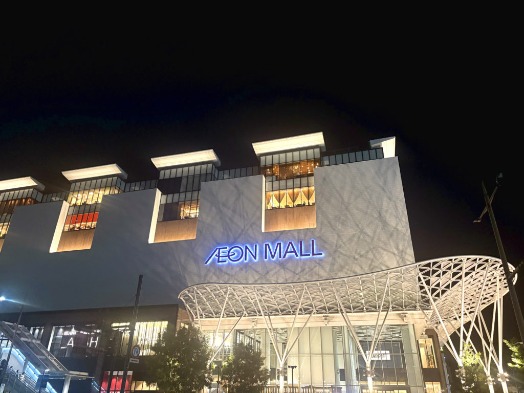 最後にイオンモールの外観を撮り、ホテルへ戻って1日目終了。