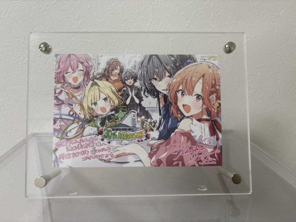 ひと通り見たあと、2階のベンチに座って感想をなぐり書きし、えく先生の直筆サインに応募した。帰りのバスがくるまでは、メインの漫画館内部を散策。推し武道の平尾アウリ先生も岡山出身だそうで、同じような原画展もやっていたそう。