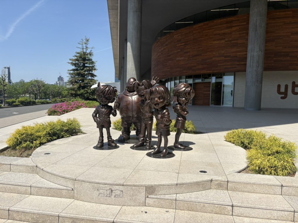 お目当ては読売テレビの前。全く知らなかったのですが、読売テレビの本社って、大阪にあったんですね。巨人のイメージが強く、東京にあると勝手に思っていました。入口で名探偵コナンの少年探偵団たちが出迎えてくれていました。